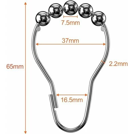 【Bonne qualité】 L’anneau du rideau de douche est en acier inoxydable de haute qualité avec une finition chromée, qui ne rouille pas facilement dans les environnements humides et peut être utilisé pendant une longue période.【Facile à installer】 Les crochets de rideau de douche sont faciles à ouvrir et à fermer, aucun outil n’est nécessaire, il suffit de décrocher l’ouverture ou de faire glisser les extrémités sur la tringle du rideau de douche pour les utiliser.【Système de glissement de boule】 Le crochet de rideau de douche a une conception de boule lisse pour réduire la friction avec le levier, est facile à tirer, sans coincement, et est lisse et facile à glisser.【Conception de boucle】 Les crochets de rideau de douche sont très rigides pour supporter des rideaux de douche ou des rideaux lourds, et les boutons-pression se ferment très étroitement pour empêcher les rideaux de glisser hors des boucles.【Large gamme d’applications】 La longueur du crochet du rideau de douche est de 70 mm, le diamètre maximum est de 40 mm et le diamètre minimum est de 16,5 mm, convient à la plupart des tiges de bain, aspect élégant et simple, peut être utilisé pour la décoration, convient pour salle de bain, chambre, placard et cuisine, très approprié pour accrocher des rideaux de douche, des rideaux Wait.