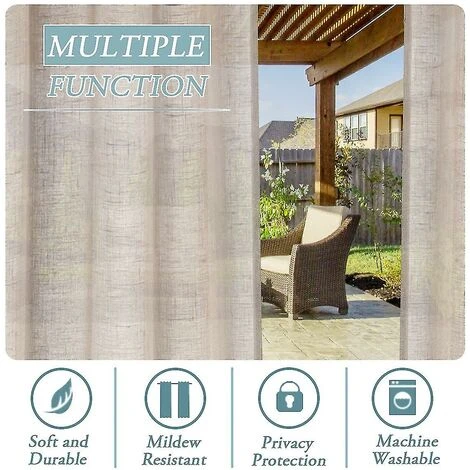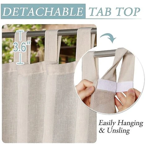 Bien fabriqué : vendu par paire (ensemble) comprenant 2 panneaux transparents en lin – Dimensions par pièce : L132 cm x P213 cm/L132 cm x P243 cm/L132 cm x P274 cm, les inserts à languette peuvent contenir jusqu’à 4 cm de tige. Chaque panneau contient sept (7) boucles supérieures amovibles. Le dessus à languette coulissante avec design auto-adhésif peut être facilement accroché et détaché sans retirer la tringle. LIN RICHE : fabriqués à partir d’un mélange de lin à tissage ouvert qui est résistant à l’eau, ces rideaux sont assez durables pour rester beaux et immaculés dans le vent et la pluie. Et les effets naturels rendent les panneaux plus drapés et beaux, testés en laboratoire sans formaldéhyde, respectueux de l’environnement, sans danger pour les enfants et les crèches, respectueux de l’environnement, ventilés et respirants : ces élégants matériaux tissés texturés en lin ont un toucher doux de qualité supérieure qui ajoute une touche de fraîcheur. charme à votre maison, qui laisse passer la lumière naturelle à travers le beau tissage mais atténue l’éblouissement du soleil, ce qui non seulement fournit une lumière précise mais équilibre également votre décoration d’intimité : ces panneaux de lin classiques intemporels décoreront votre maison avec un effet rafraîchissant, des motifs simples. sont esthétiques, ajoutant un look élégant et chic à n’importe quel espace, créant une atmosphère festive et complétant parfaitement n’importe quel style de maison. Idéal pour les pergolas de patio extérieur, les belvédères, les porches, les terrasses, les piscines et les pièces intérieures