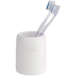 WENKO Gobelet Salle De Bain, Porte Brosse à Dent, The Collection, Polyrésine, Ø 8×10 Cm, Blanc