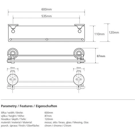 Caractéristiques de l’étagère en Laiton et Verre, Chrome Bemeta Ricordi (OPTIMARIC24CR) :