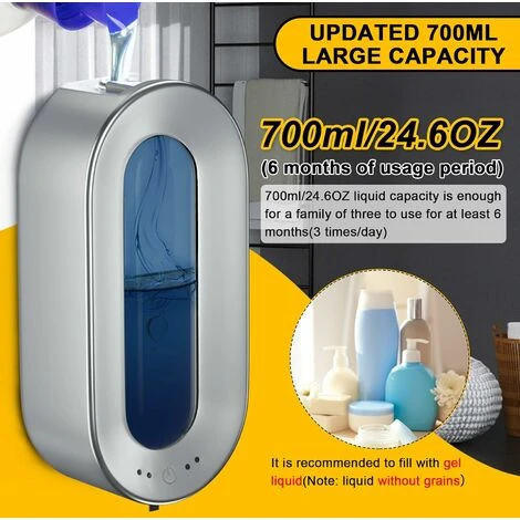Distributeur de savon multifonctionnel: Le distributeur de savon peut se remplir de 700 ml de gel liquide (sans grains), de gel douche, de shampoing liquide, de savon liquide, de désinfectant pour les mains, d’alcool désinfectant, etc., pour répondre à différentes demandes. Un idéal parfait pour les maisons, les bureaux, les écoles, les hôtels, les banques, les hôpitaux et de nombreux autres lieux publics. (Remarque: ce produit ne contient pas de gel liquide)