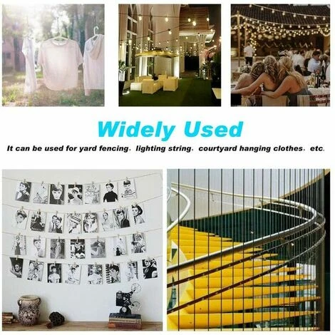 【Super haute qualité】 : Une fois le câble serré, il est suffisamment robuste pour accrocher des guirlandes lumineuses haute performance dans de grandes zones ouvertes et empêcher les guirlandes commerciales de s’affaisser