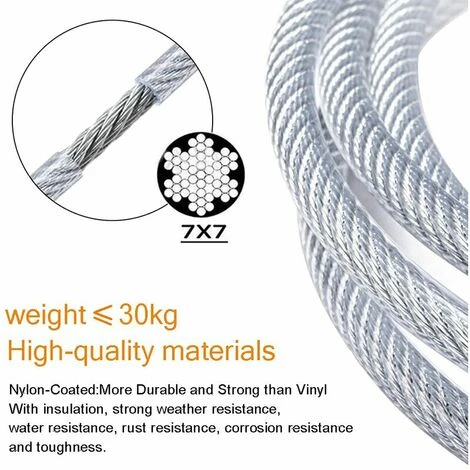 Contenu de l’emballage 1 * 15/20 /30 / 50 m de câble, 5 * vis de panier de fleurs, 10 * clou cousin, 10 * vis d’extension, 10 * collier, 20 * deux fois