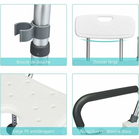 - 【Expérience d’assise confortable:】Bénéficiant d’un siège de 31 cm X 41,5 cm et d’un dossier de 41 cm X 17 cm, cette chaise de douche vous offre une expérience assise douce et confortable tout en prenant votre douche. De plus, la boucle de douche supplémentaire vous permet de faciliter votre douche.