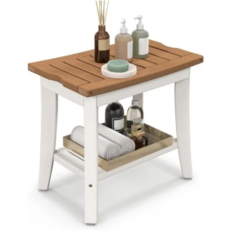 - Fabriqué en HDPE durable et robuste, le tabouret de bain Spa peut supporter une charge élevée jusqu’à 150 kg. En outre, la finition soignée garantit une durée de service plus longue. Vous pouvez organiser vos essentiels de bain de manière ordonnée grâce à l’espace de rangement à 2 niveaux. De plus, la polyvalence permet à ce banc de salle de bain de servir de table d’appoint de canapé dans le salon, d’étagère à chaussures dans l’entrée, de support pour plantes sur le balcon. Côté nettoyage, la surface lisse et imperméable vous permet de l’essuyer avec un chiffon doux. De plus, la conception des lattes évite l’accumulation d’eau pour une excellente ventilation.