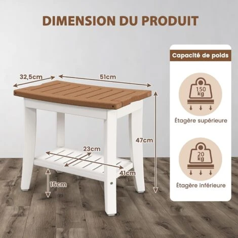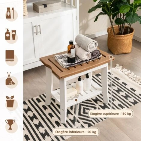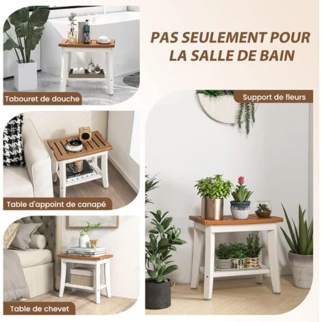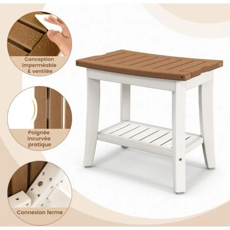 - Sert de banc de douche, d’étagère de rangement, d’étagère à chaussures.