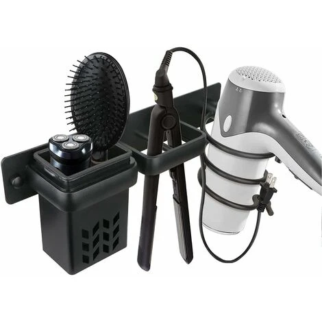 - Organiseur 3 en 1 : support de sèche-cheveux en spirale, support de fer à lisser et fente de rangement 3 en 1, ce qui offre plus d’espace pour ranger sèche-cheveux, fer à lisser, fer à friser, brosses à cheveux, rasoirs. La fente de rangement avec design creux sculpté n’accumulera pas l’eau.