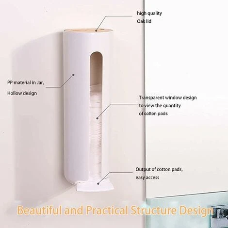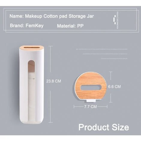 【Dimensions】7,7 cm x 6,5 cm x 24 cm, le distributeur de maquillage est fabriqué à partir de matériaux ABS durables de haute qualité et de bois de caoutchouc. Convient pour un coton carré ou rond.