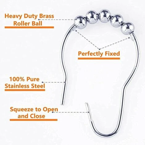 Anticorrosion, chromé – Les crochets / anneaux de suspension du rideau de douche sont chromés et recouverts une belle finition argentée. Ils reflètent magnifiquement la lumière et rendent la salle de bain élégante.