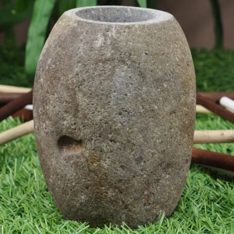 Pour une salle de bain à l’esprit naturel optez pour ce gobelet de salle de bain en pierre galet de rivière avec extérieur brut et intérieur poli. Cet accessoire de salle de bain permet le rangement de vos brosses à dents et sera idéalement placé près de votre lavabo ou lave-main. Cet élément déco et pratique trouvera parfaitement sa place au sein de votre salle d’eau. Accompagné d’une vasque en pierre naturelle, à l’extérieur également brut, l’ensemble sera unique! (les mesures sont approximatives et les photos non contractuelles car chaque pièce est unique). Dimensions gobelet Diamètre : 7 cm Hauteur : 10 cm