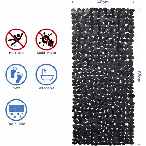 Conception unique en galets: notre tapis de douche antidérapant en galets avec 167 ventouses puissantes qui peuvent adhérer fermement à la baignoire et au fond d’une baignoire ou d’une cabine de douche