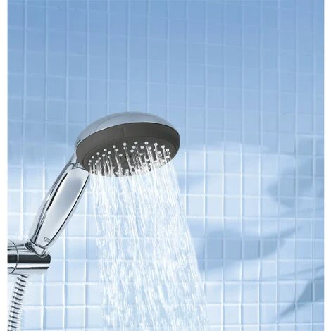 GROHE Vitalio Start possède une apparence stylée et des attributs pratiques avec ses 3 jets disponibles. L‘anneau en silicone antichoc évitera en cas de chute, d’endommager le bac à douche : idéal pour les jeunes enfants.