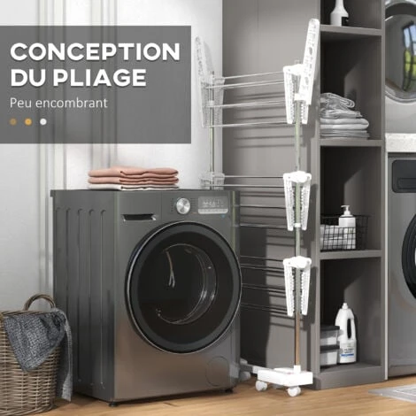 – 2 bras de suspension pour accrocher la lessive sur cintre, pliable et réglable en hauteur