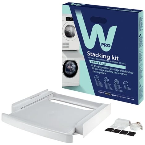 Kit De Superposition Universel Wpro. Pièce d’origine fabricant contrôlée. Le kit de superposition Wpro est la solution gain de place en toute sécurité. Il permet de stabiliser le sèche-linge sur le lave-linge grâce à son système de fixation avec sangle équipée d’un système Safe-in-Lockr. Universel, il s’adapte à tous les appareils de 60×60 cm. Sa tablette coulissante offre un plan de travail supplémentaire pour charger, décharger et plier le linge sans se baisser. Dispose d’une tablette coulissante pouvant supporter 10kg Contient : 8 patins antidérapants adhésifs 4 plaquettes rigides en plastiques 1 sangle avec tendeur à cliquet Safe-in-Lockr 1 cache pour le tendeur à cliquet Safe-in-Lockr.
