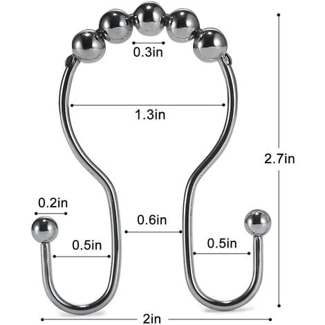 [Beau et élégant] : les crochets de douche chromés galvanoplastie pour rideau de douche au design simple et généreux, conviennent à la fois pour une salle de bain rétro et moderne. Il peut durer pour une utilisation à long terme et ne se décolore pas. [Double crochets de douche] : les doubles crochets de rideau de douche sont fabriqués avec un artisanat exquis. L’obstacle sur les deux côtés fixe les boules pour garder l’équilibre, ce qui empêche le rideau de douche de tomber, il est assez solide pour tenir à la fois un rideau lourd et une doublure.Emballage : lot de 12 crochets antirouille pour rideau de douche compatibles avec toutes les tringles de rideau de douche de taille standard.