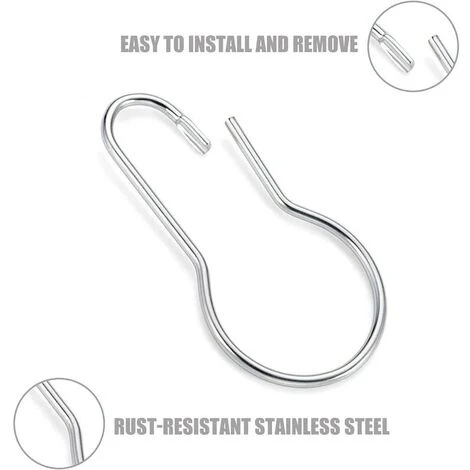 Facile à installer et à enlever : les crochets de rideau de douche sont faciles à ouvrir et à fermer, aucun outil n’est nécessaire, peuvent glisser facilement sur les trous et les tringles du rideau de douche
