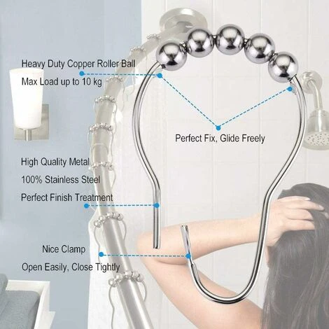 élégante. [Facile à glisser] : l’anneau de douche a 5 petites boules, qui peuvent facilement glisser le long de la tringle de douche. Ouvrez l’anneau et accrochez-le au poteau. Conception de balle, système coulissant, sans effort, sans pression, mouvement fluide. [Applicable à de nombreuses occasions] : l’ensemble auto-agrippant peut être utilisé non seulement pour les rideaux, mais également comme outil pratique dans la cuisine, la chambre, le berceau, le salon et d’autres endroits.