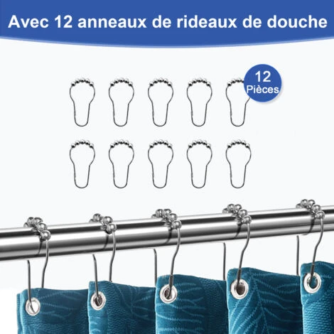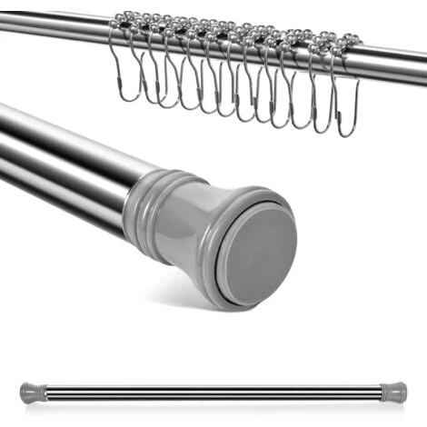 Meykoers Tringle à rideau de douche en acier inoxydable 70-110cm, sans perçage télescopique Barre de Douche, avec 12 anneaux de rideaux de douche