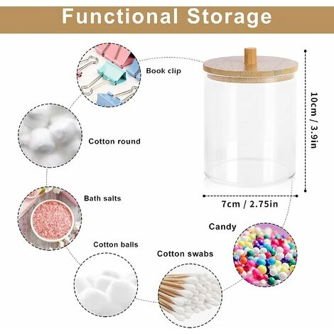【Large application】Cette boîte en plastique est conçue pour les cotons-tiges, les boules de coton, les tampons de maquillage, les bâtons de fil, le sel de bain, les élastiques à cheveux, les pinces et tout autre accessoire de cuisine de salle de bain.