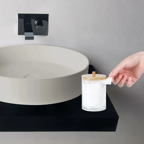 Matériau de qualité supérieure : le distributeur pour cotons-tiges est fabriqué en plastique épais, les couvercles sont fabriqués en bambou de qualité supérieure, avec un bord lisse, sûr et difficile à casser.