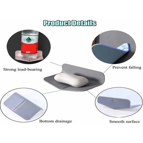 Caractéristiques : Matériau du produit: PP (polypropylène). Couleur du produit : Blanc, gris, bleu foncé. Champ d’application : Marbre, mur en carrelage, mur en bois, surface en verre, mur en mastic, mur peint. Dimensions du produit : Hauteur 5,5 cm, longueur 14,5 cm, largeur 8,1 cm. Comment retirer le vernis : 1. Tirez fermement le porte-savon. 2. Retirez lentement l’adhésif du mur avec de l’alcool ou du détergent ou de l’eau de nettoyage pour verre.