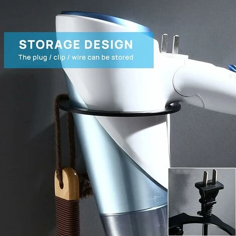 La surface du sèche-cheveux est belle, durable, imperméable et résistante à la corrosion, adaptée à un usage domestique ou hôtelier. [Tidy] La forme ronde du support de sèche-cheveux permet déconomiser de lespace. Lespace sur la coiffeuse ou létagère est très petit, et le support mural pour sèche-cheveux résout vos problèmes, et le cordon du sèche-cheveux ne sera pas en désordre. Afin