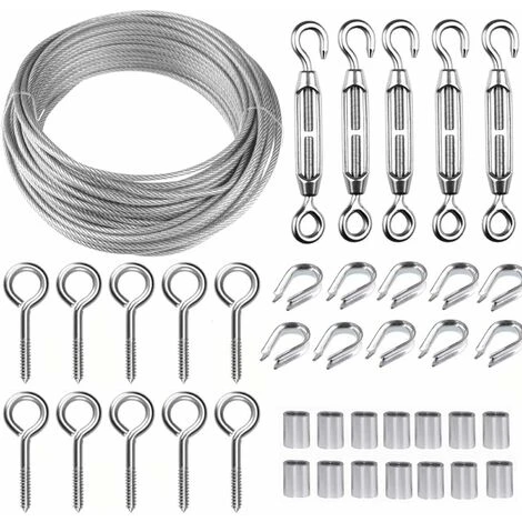 【Kits de fil de formation pour plantes】–Livré avec un câble métallique de 30 m/2 mm, 5 crochets et œillets de tendeur M5, 10 cosses de câble métallique M2, 10 crochets à vis à œil M5 (œillets de vigne), 20 × M2 en aluminium Boucle de sertissage.
