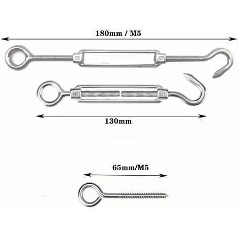 【Kit de tendeur de fil de tendeur】 – Le crochet de tendeur M5 et les crochets à œil M5 sont un accessoire de suspension parfait pour les tâches lourdes, tous fabriqués en acier inoxydable 304, manchon de boucle de sertissage en aluminium en aluminium,