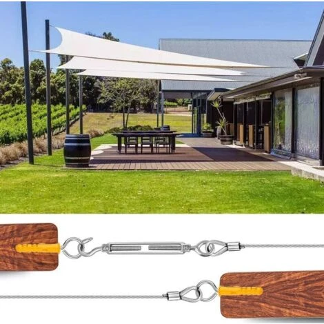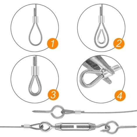 à installer et à démonter. Il a une bonne résistance à la corrosion et à la rouille; le manchon de la bague de sertissage est en aluminium, qui est solide et résistant, vous permettant de l’utiliser pendant longtemps. [Large utilisation] Fils pour lumières extérieures, applications de corde de tente extérieure, rampes de câbles de pont, lumières globales, corde à linge, affichage d’images. Les kits d’éclairage suspendus pour les fêtes romantiques peuvent également