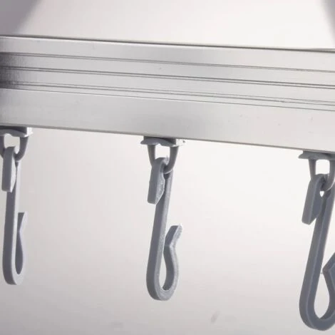 Le rail de rideau de douche est fait d’aluminium pressé sans soudures visibles et donc la rouille n’a presque aucune chance. Il est tellement poli qu’il est facile à nettoyer avec des produits de nettoyage courants. Le montage est très simple et le rail est fixé au mur à l’aide de deux vis et bouchons muraux.