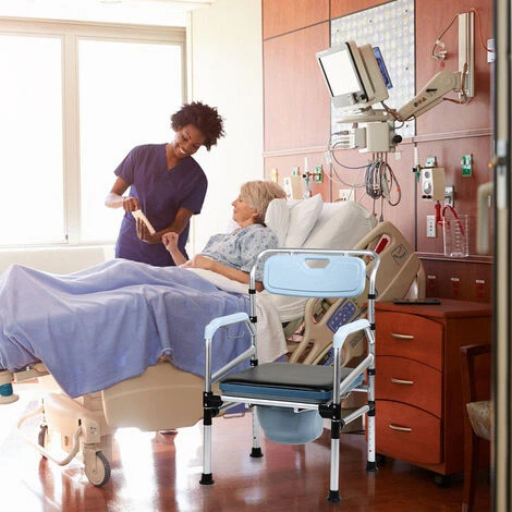 Cette chaise de toilette réglable en hauteur offre une solution sûre, confortable et hygiénique pour les personnes âgées ou à mobilité réduite qui ont besoin de toilettes à proximité de leur lit.