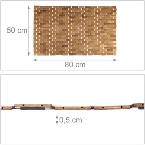Les aménagements de salle de bain froids n’encouragent pas vraiment à avoir un sentiment de bien-être agréable. Avec le tapis de bain en bambou, vous vous opposez un peu au froid. Non seulement le matériel se fond parfaitement avec son aspect chaleureux mais il est en outre très résistant et étanche. Les bandes antidérapante sur le dessous évite que la carpette de douche ne glisse sur le carrelage lisse. Le caillebotis en bambou peut être enroulé sans problème et rangé sans encombre.