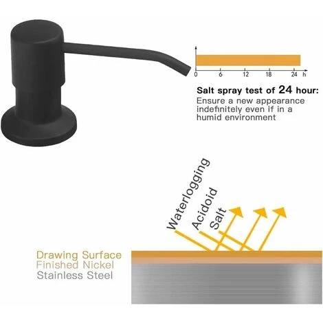 Nos distributeurs de savon sont fabriqués en laiton robuste de qualité commerciale et en plastique PE durable. La finition brillante multi-couches en noir le rend résistant à la rouille.