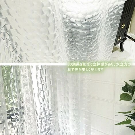 Protection de l’environnement: Avec du matériel de protection de l’environnement et résistant à la moisissure. Imperméable à l’eau: éviter les éclaboussures de la douche et un effet de blocage pour les personnes dans la douche. Caractéristiques: construction de style design verrerie 3D clair EVA chlore naturellement entretien antibactérien et imperméable à l’eau lavable anti-moisissure anti-moisissure y compris les bagues Q & AQ Lundi: Pouvez-vous voir A travers ce rideau: Il est semi-transparent, une silhouette en voir de près et permettre à la lumière, mais pas en cristal clair. F: Est-ce que cette douche Liner une odeur chimique / plastique A: contenant ce rideau Aucune feuille de 100% de EVA pas de chlore et l’odeur nocive chimique.