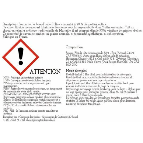 Savon noir traditionnel concentré, disponible en 1 litre, 5 litres et 10 litres