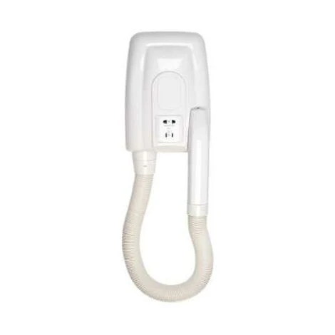 Sèche-cheveux Mural avec thermostat. Il est doté d’un arrêt automatique en le raccrochant. 3 vitesses, prise rasoir. Niveau sonore à 2 m : 68 dB.
