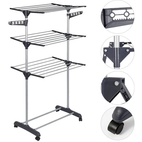 • Avec 3 niveaux et 2 ailes latérales, vous pouvez placer vos vêtements avec une bonne quantité d’espace entre eux afin qu’ils puissent sécher complètement
