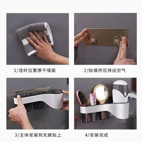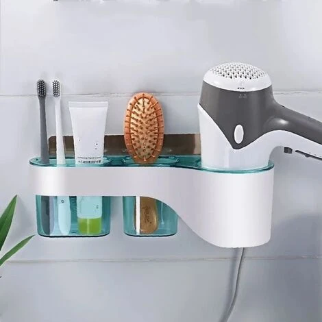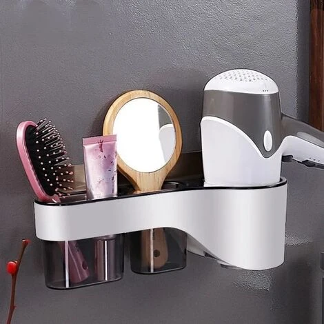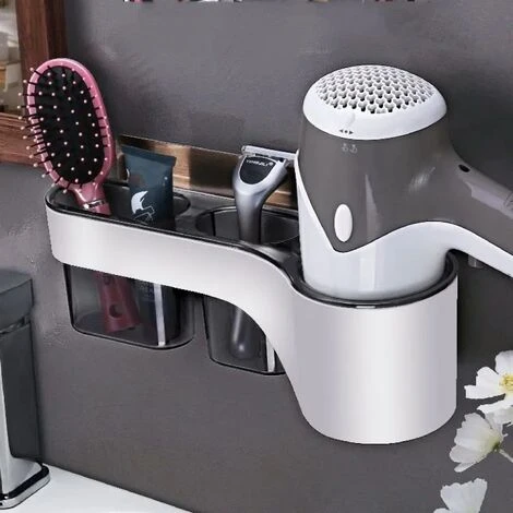 Multifonctionnel : le support pour sèche-cheveux offre 3 compartiments pour ranger les articles.