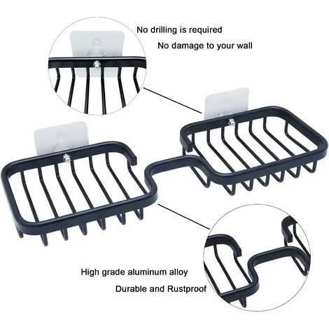 ainsi sa durée de service. Le panier à savon est fabriqué en aluminium solide, qui est antirouille et imperméable, un matériau métallique durable permet une utilisation prolongée.