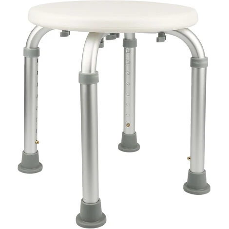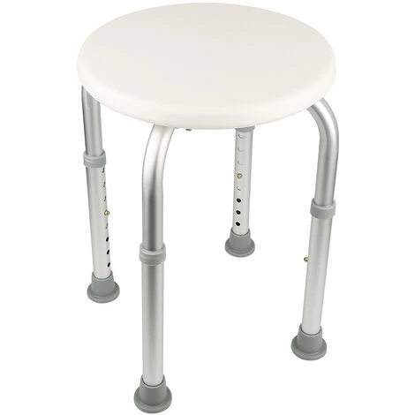 Tabouret de Douche Rond réglable en hauteur 31 cm x 31 cm x 54 cm en Aluminium Blanc
