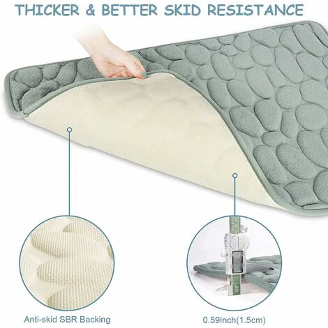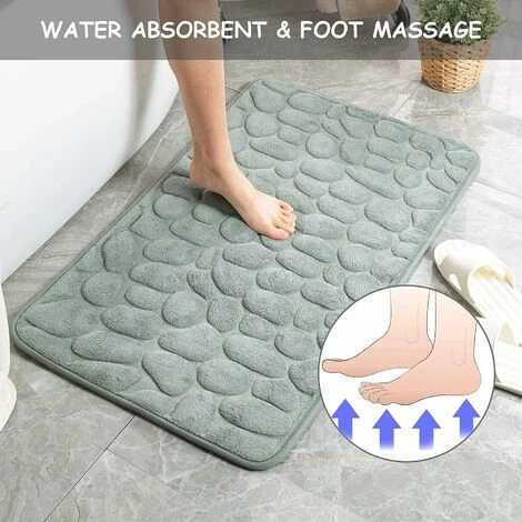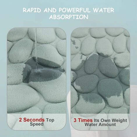 【ULTRA ABSORBANT ET SEC RAPIDE】: Le matériau en mousse à mémoire de forme peut absorber trois fois le volume d’eau que son propre corps. Il fonctionne bien pour absorber l’eau lorsque vous sortez de la douche. De plus, les tapis de bain sèchent bien sans