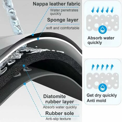 【Surface Douce et Confortable】 Le tapis de bain est composé de 4 couches de matériau et la surface est en cuir écologique, doux et confortable
