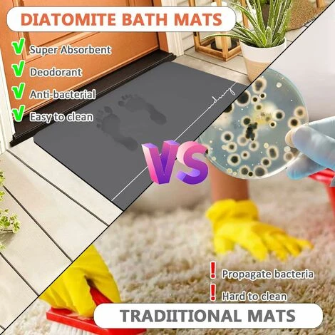 Super Absorbant et Séchage Rapide – Fabriqué en terre de diatomées naturelle sûre avec une super capacité d’absorption d’eau et une capacité de séchage rapide. Il peut absorber la majeure partie de l’eau de la plante de vos pieds en quelques secondes et évaporer rapidement l’eau de la surface, garder vos pieds et votre sol secs et propres