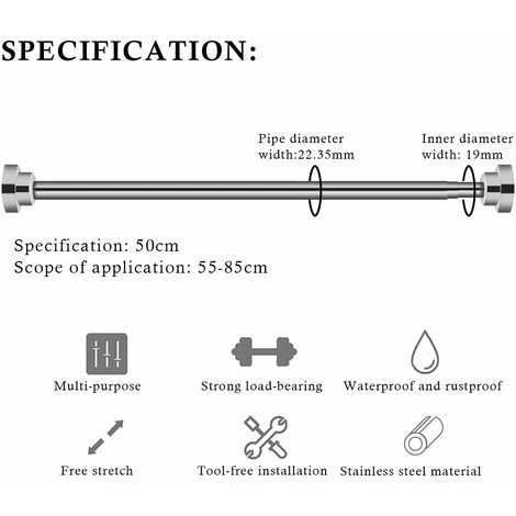 【Conception extensible et installation facile】 Le ressort intégré de la tringle de rideau de douche télescopique et la surface en caoutchouc antidérapante à l’extrémité peuvent créer une grande tension et garder un petit espace pour s’asseoir. Il est