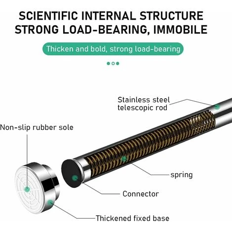 Design scientifique : la barre télescopique est équipée de ressorts qui ont une tension suffisante. Dans le même temps, les deux extrémités de la barre télescopique sont équipées de caoutchouc antidérapant, de sorte qu’elle peut être solidement fixée