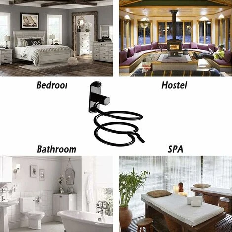 Champ D’application: Le support de sèche-cheveux est compatible avec la plupart des types et tailles de sèche-cheveux. Vous pouvez l’utiliser dans la salle de bain ou la chambre, ce qui sera très pratique. En même temps, il peut également vous aider à