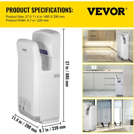 - APPLICATION EXTENSIVE : Ideal pour secher rapidement les mains, ce seche-mains vertical peut etre utilise en toute saison car vous pouvez regler sa temperature pour votre confort. Il est compatible avec les maisons, les hopitaux, les aeroports, les ecoles, les bureaux, les centres commerciaux, etc.