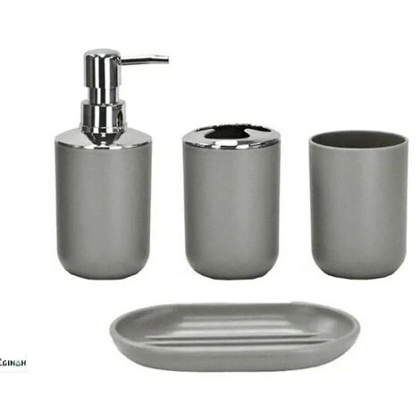 Contenu de la livraison: Distributeur de savon: L 7.5 x L 7.5 x H 17 cm. Porte-brosse à dents: L 7.5 x L 7.5 x H 11 cm. Tasse: L 7.5 x L 7.5 x H 10.5 cm. Porte-savon: L 13.6 x L 8.6 x H 1.5 cm.